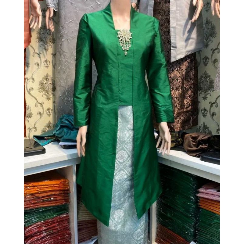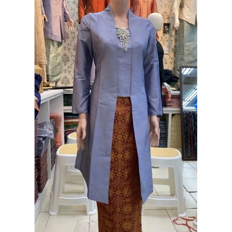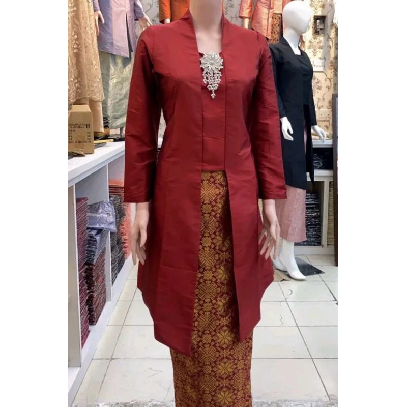 Setelan Kebaya Tunik Polos Kutubaru / Kebaya Tafeta Tunik Jumbo / Kebaya Kondangan Rok Songket
