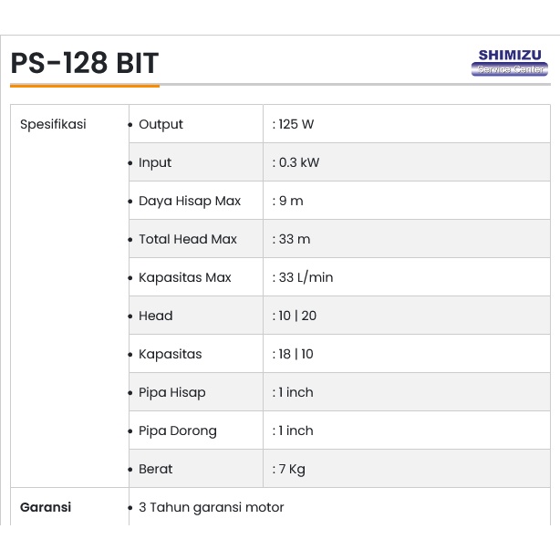 POMPA AIR SHIMIZU PS 128 BIT ALAT PENYEDOT AIR WATER PUMP