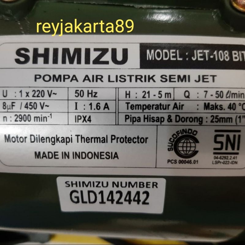 Pompa air shimizu semi zet 108bit non outo SHIMIZU PS 108 BIT Termurah