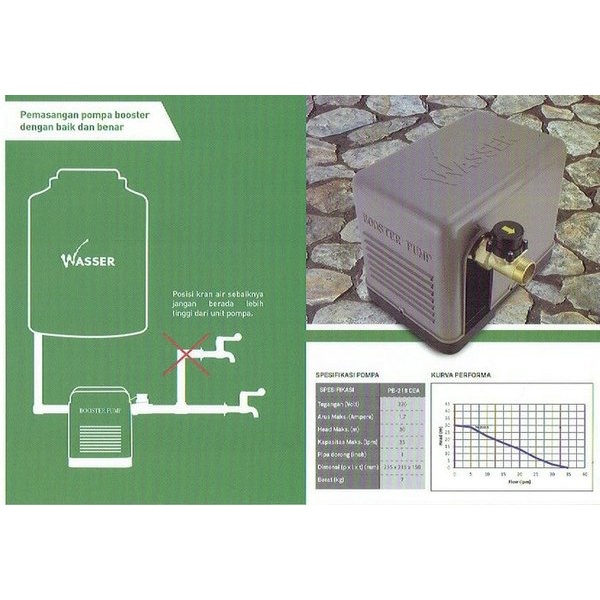 Pompa Booster Wasser PB 218 EA / PB 218 EAC / PB 168 Mesin Air Pendorong dengan penutup dan flow switch | Sentral Pompa