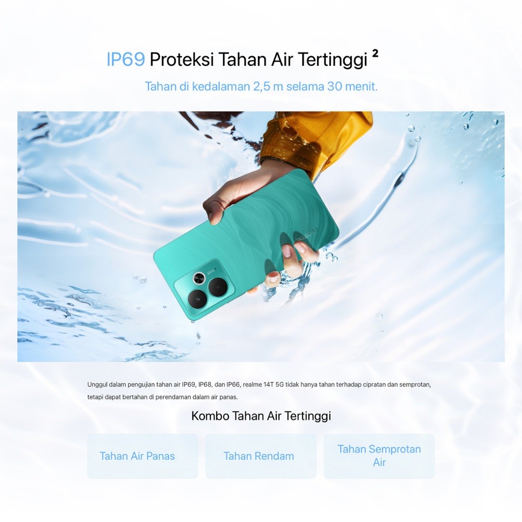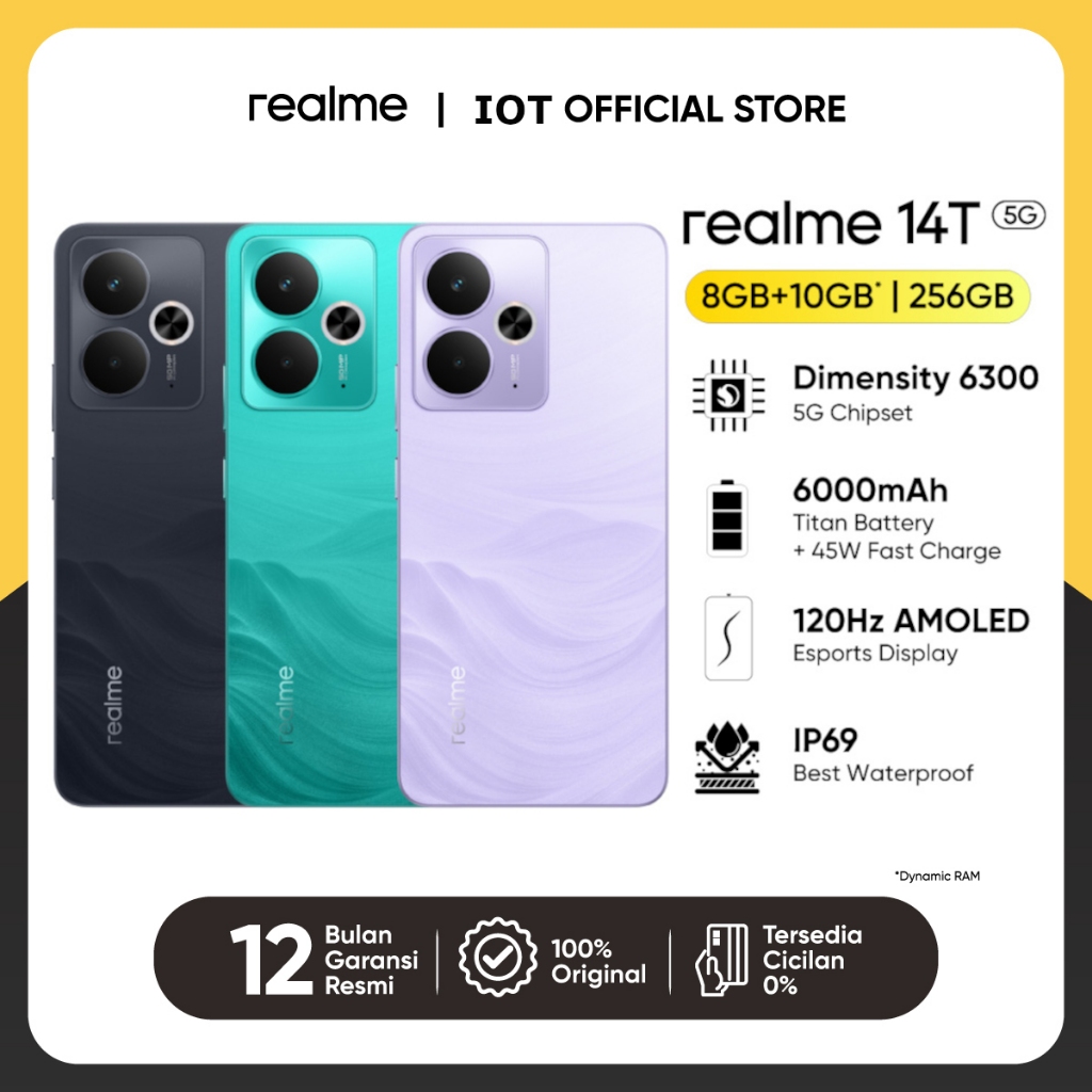 realme Official Authentic 14T 5G HP Gaming Baterai 6000mAh Fast Charging 100W - Chipset Dimensity 6300 Layar 120Hz OLED RAM 8GB Kamera 50MP IP68 Anti Air