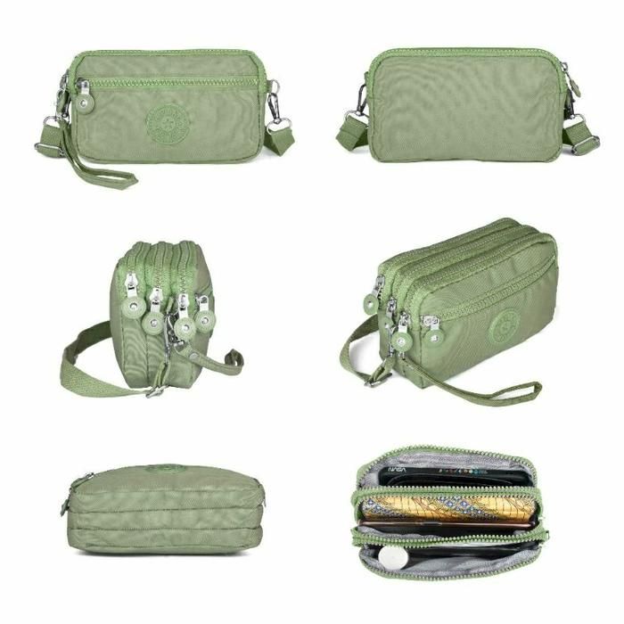 Dompet HP Wanita Tas HP Selempang 4 Resleting Besar Import Waterproof - Hitam