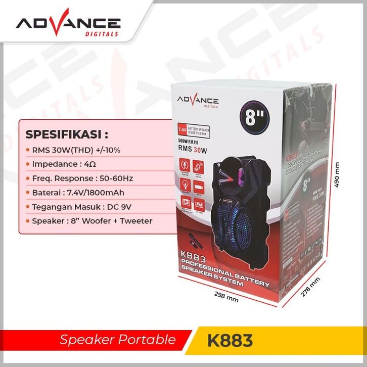 Speaker Advance K883 Meeting Bluetooth Portable Plus Mic Wireless Karaoke pengajian senam Gitar