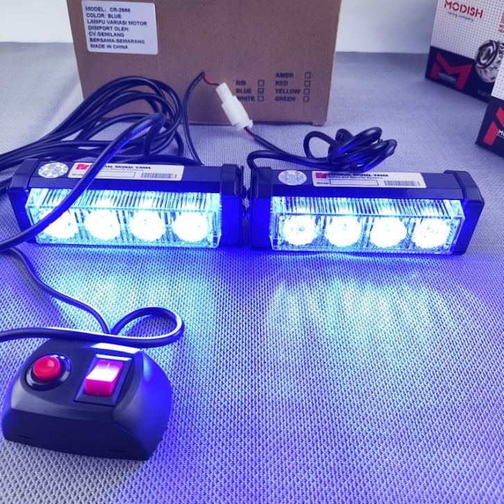 senar raket tenis Lampu Led 4x2 4 Mata Federal Signal Biru Biru Flash Running Kedip 8 M0DEe Universal Motor Mobil