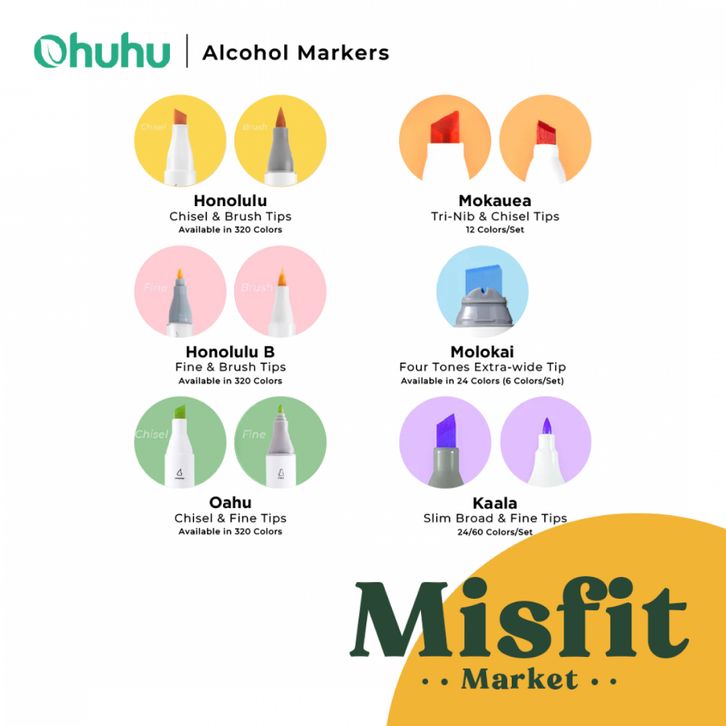 OHUHU Honolulu B Pastel 48 Colors Dual Tip Brush Fine Chisel Alcohol Art Markers Spidol Kuas Warna