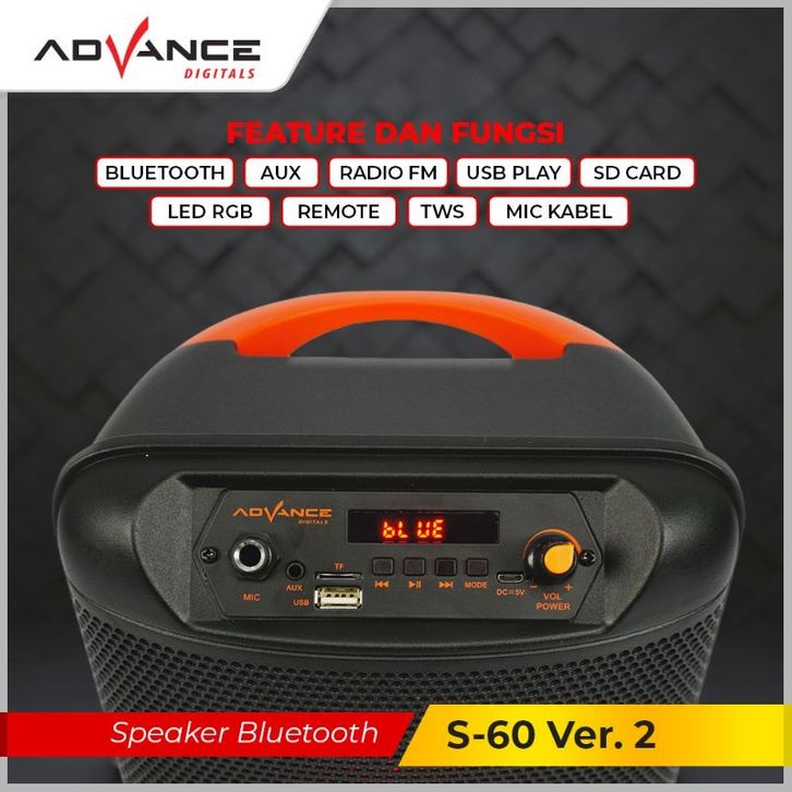 speaker advance bluetooth music & karaoke s-60 8inch / s60 8" free mic
