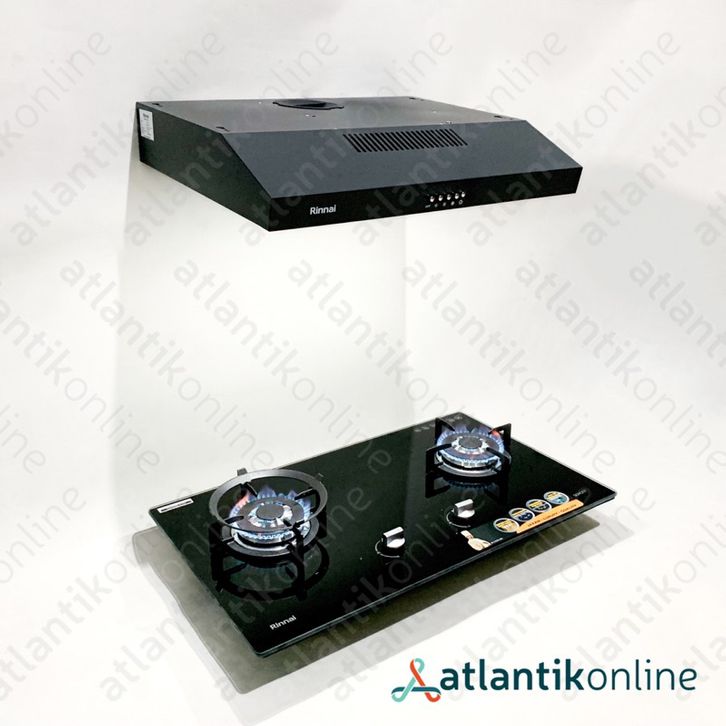 Kompor gas tanam built-in hob 2 tungku RINNAI RB-712N(GB) RB712NGB + Cooker hood cookerhood RINNAI RH-126B RH126B