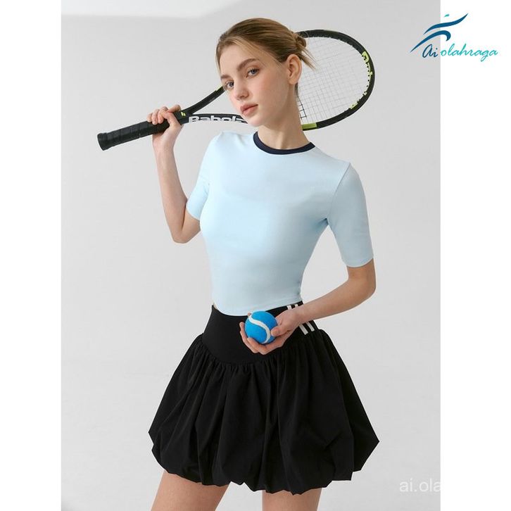 pakaian tenis Set Pakaian Golf dan Tenis yang Menyerap Kelembapan Set Rok Kasual Floral Lengan Pendek Slim Fit