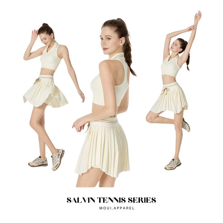 pakaian tenis MOUI.APPAREL - SALVIN TENNIS SERIES POLO COLLAR TOP SPORTS BRA FIXED PADDING HIGHWAIST TENNIS SKORT
