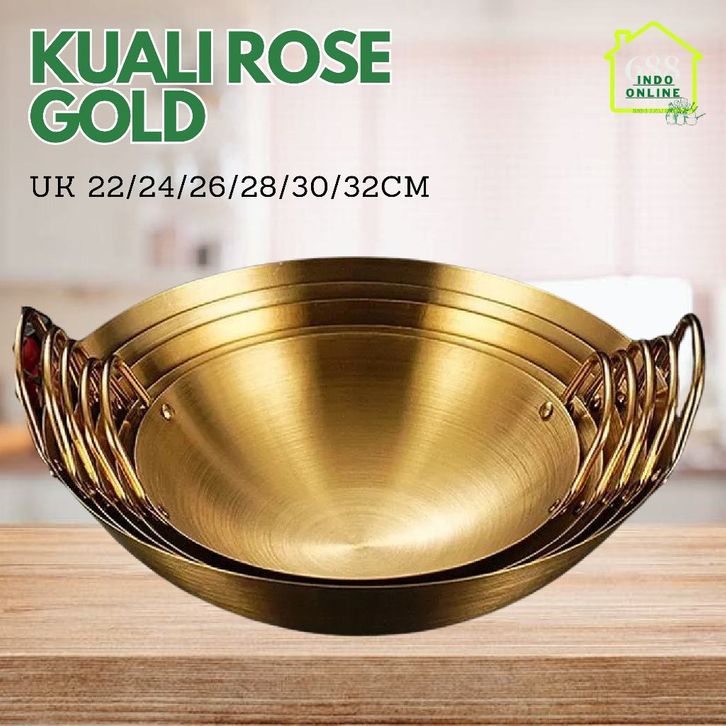 Indoline - Penggorengan Wajan Kuali Rose go-ld Premium Tebel 22/24/26/28/30Cm -Kuali Stainless Steel Anti Lengket -