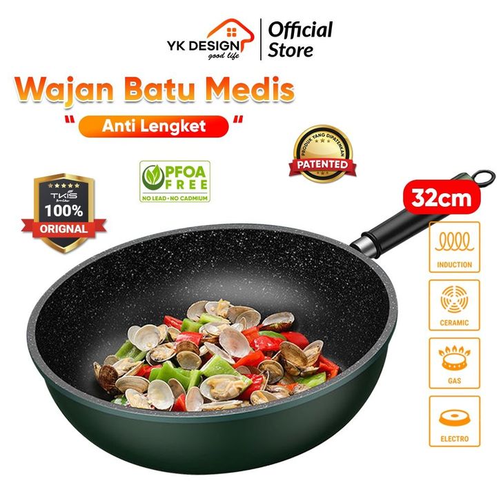 Tkis By Yk Design Tk-837 Wajan Penggorengan Antilengket Batu Medis Warna Hijau 32 Cm