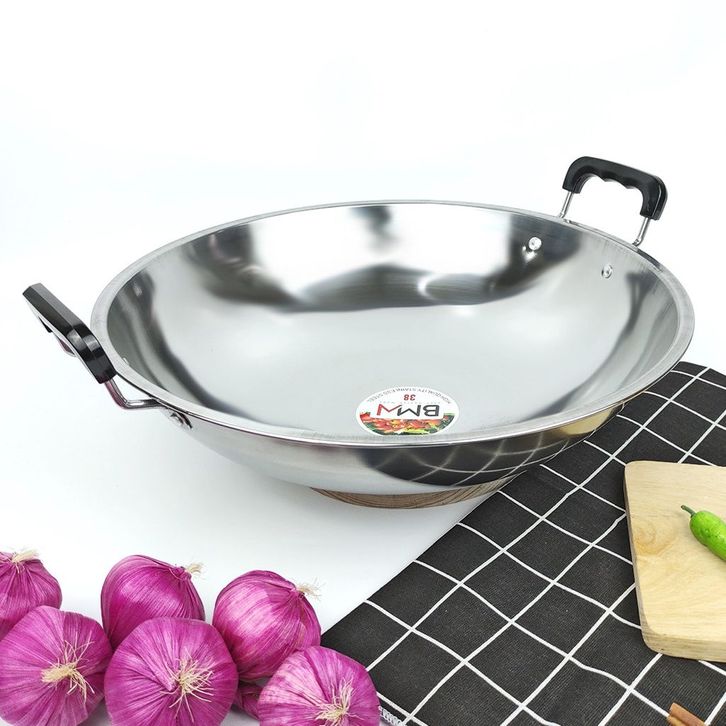 Wajan Kuali Penggorengan Stainless Steel / Wajan Premium 2 Gagang Tebal Anti Panas