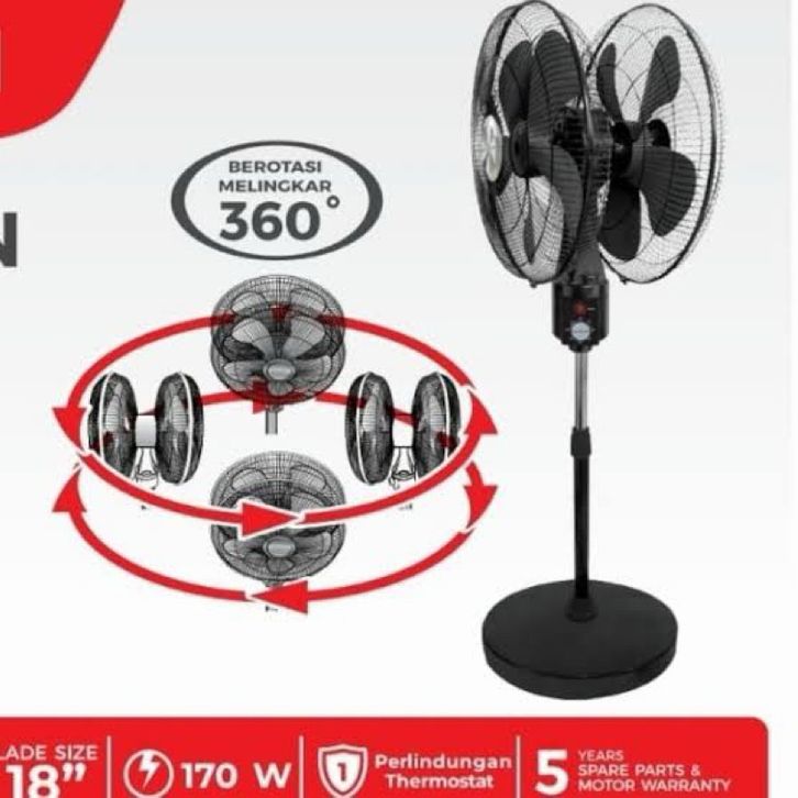 Maspion Power Stand Fan Kipas Angin Berdiri 18 Inch PW-1818 S / Kipas Angin Industri Maspion 360 derajat