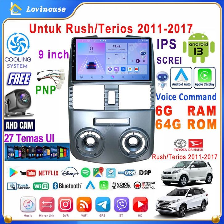 【Untuk Rush/Terios 2011-2017】6G+64G Android 13 Head Unit Termasuk Frame/PNP Soket 9 Inci IPS Screen qq