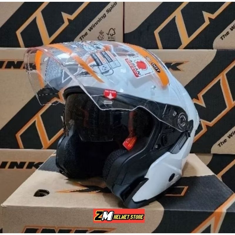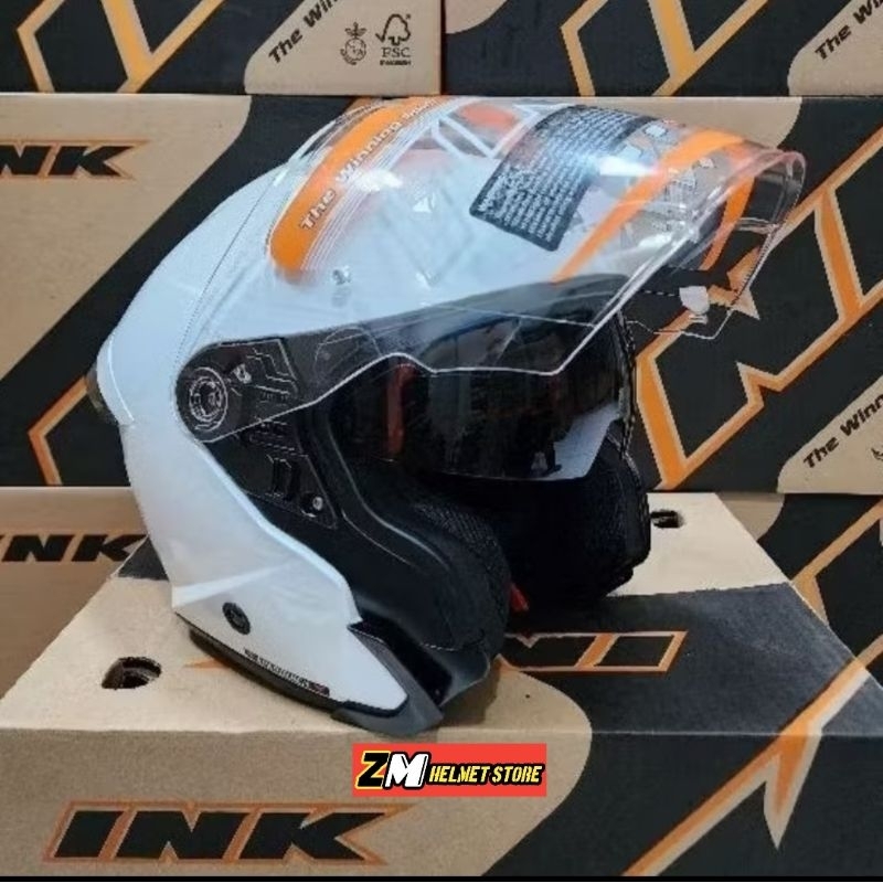 Helm INK TERRA 2 Solid 2025 Half Face Double Visor slot intercome Kekinian SNI DOT Free Spoiler