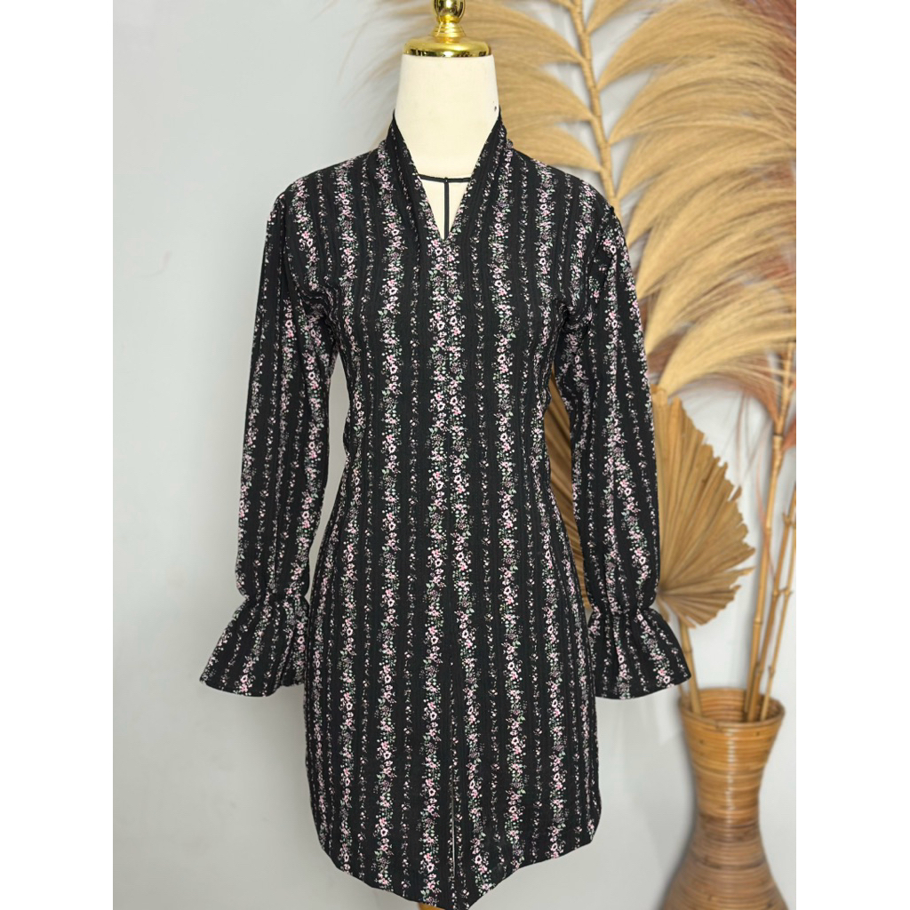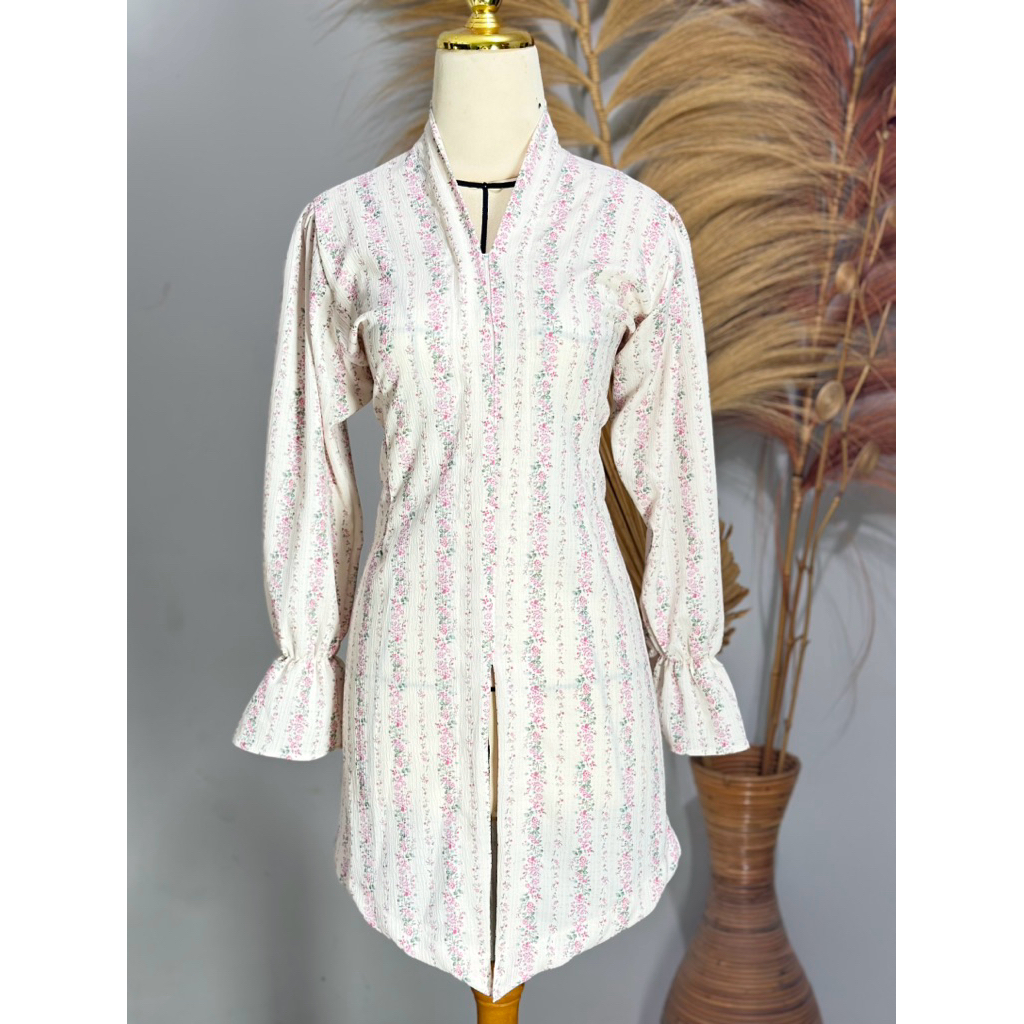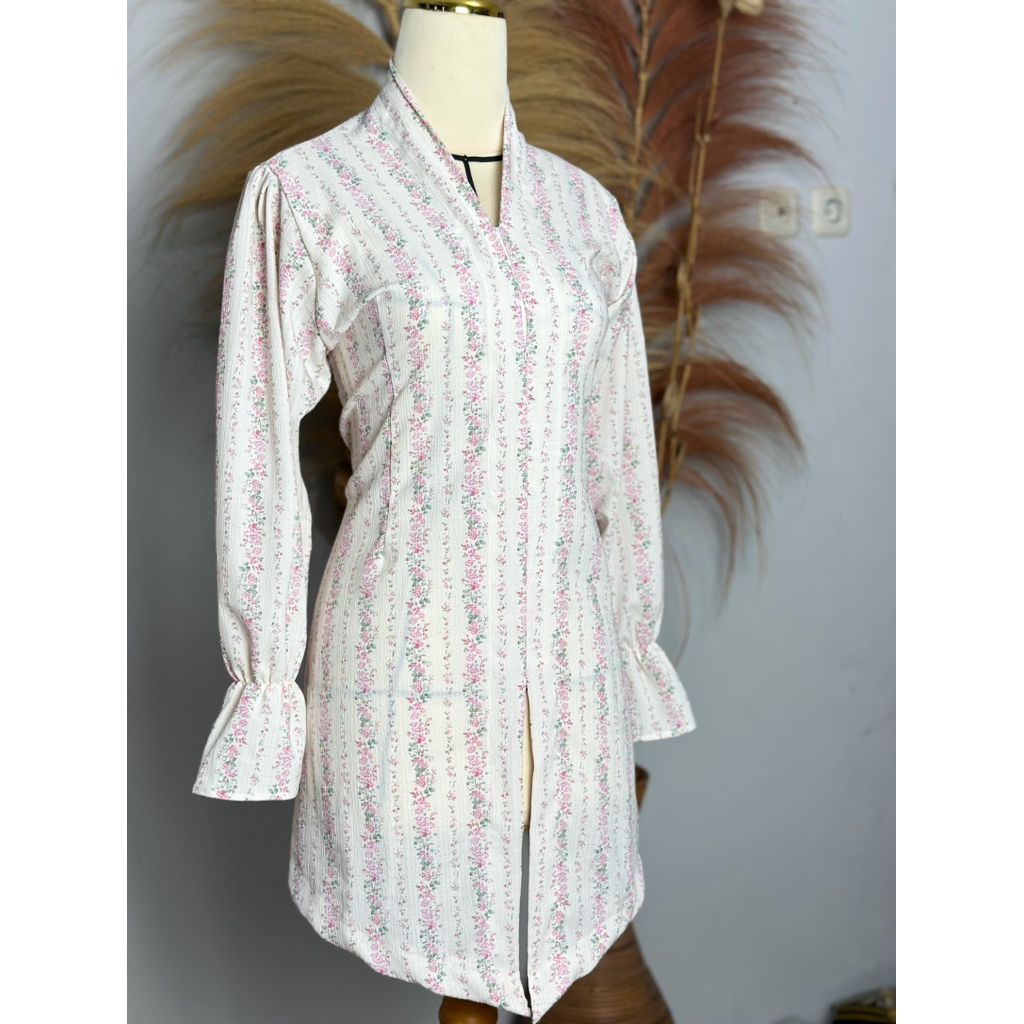 Kebaya Laela /Kebaya Kartini Panjang/Kebaya Bali Panjang Bahan Cringkle Motif Bunga Cantik