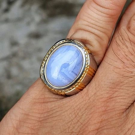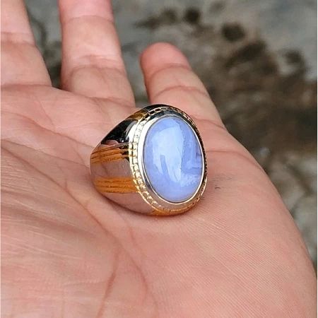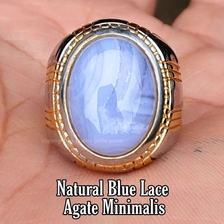 CIN CIN BATU AKIK NATURAL BLUE LACE AGATE TITANIUM MINIMALIS