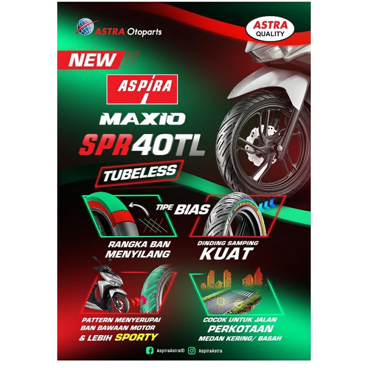 [ Paket 2 Ban SPR40 ] ASPIRA MAXIO SPR40 - Ban motor Matic Tubeless 90 80 14 & 100 80 14 FREE PENTIL
