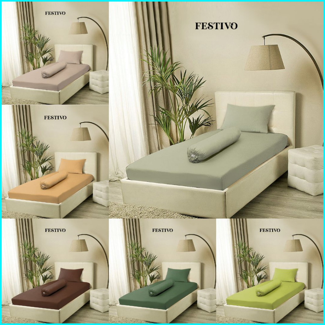 Festivo Sprei Set Katun Polos Ukuran 90x200 100x200 120x200 Tinggi 20cm - Oyamura