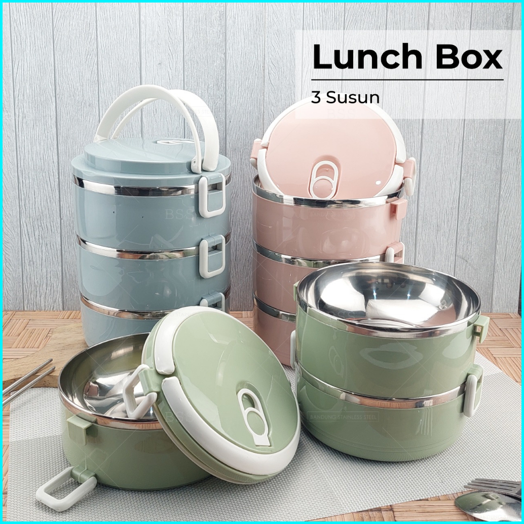 Rantang Lunch Box 3 Susun Polos Lucu Elegan Tempat Bekel Makanan