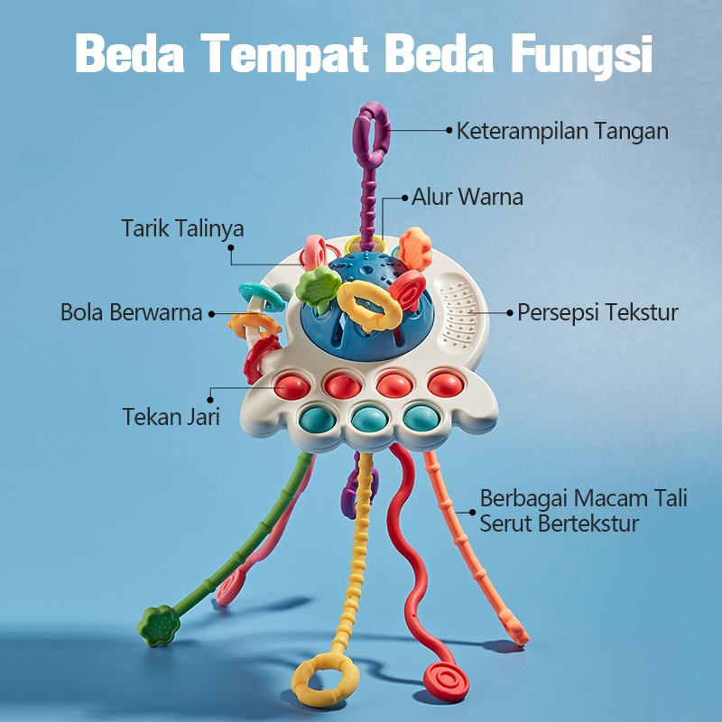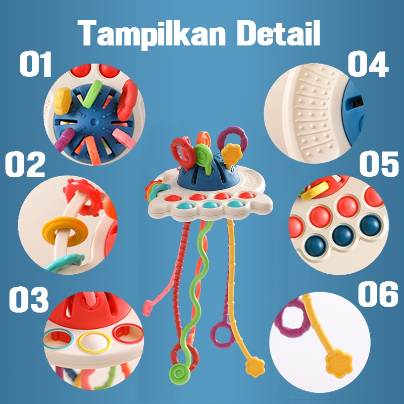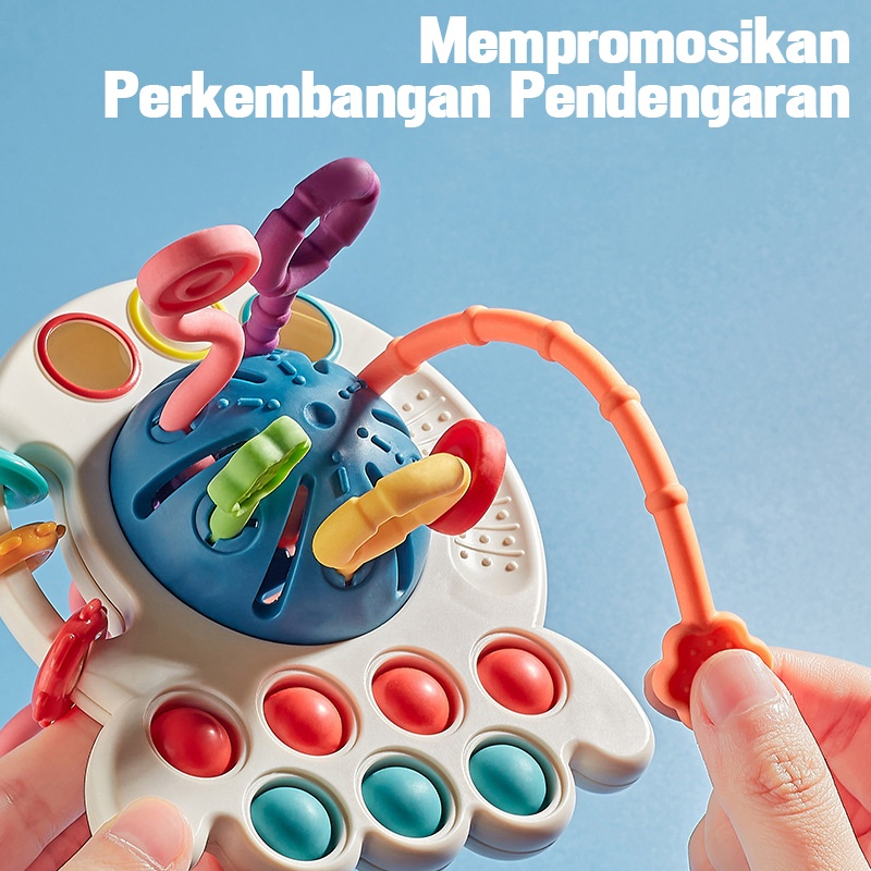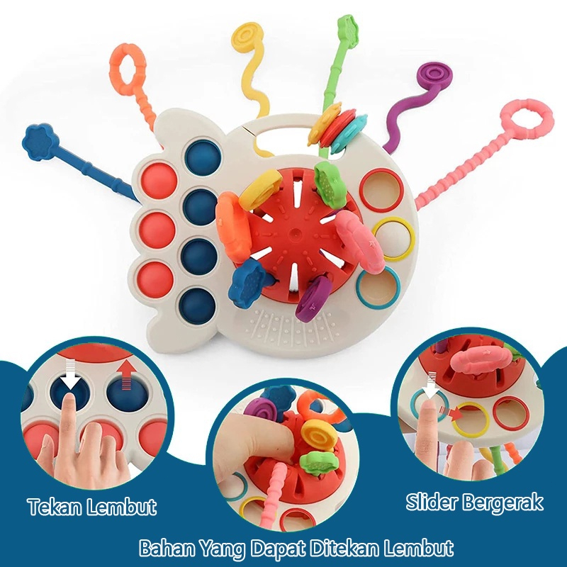 Mainan Edukasi Bayi BPA Free Multifungsi Pop It Teether Bayi Tarik Panjang Mainan Gigitan Bahan Silikon