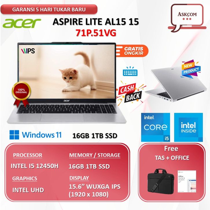 Acer Aspire Lite AL15 15 I5 12450H 16GB 1TB W11+OHS+M365B 15.6WUXGA IPS 71P.51VG