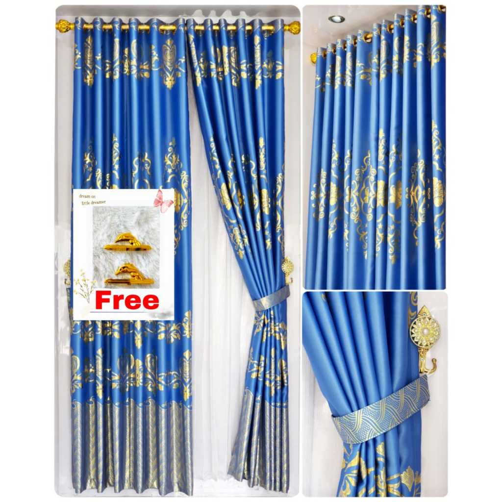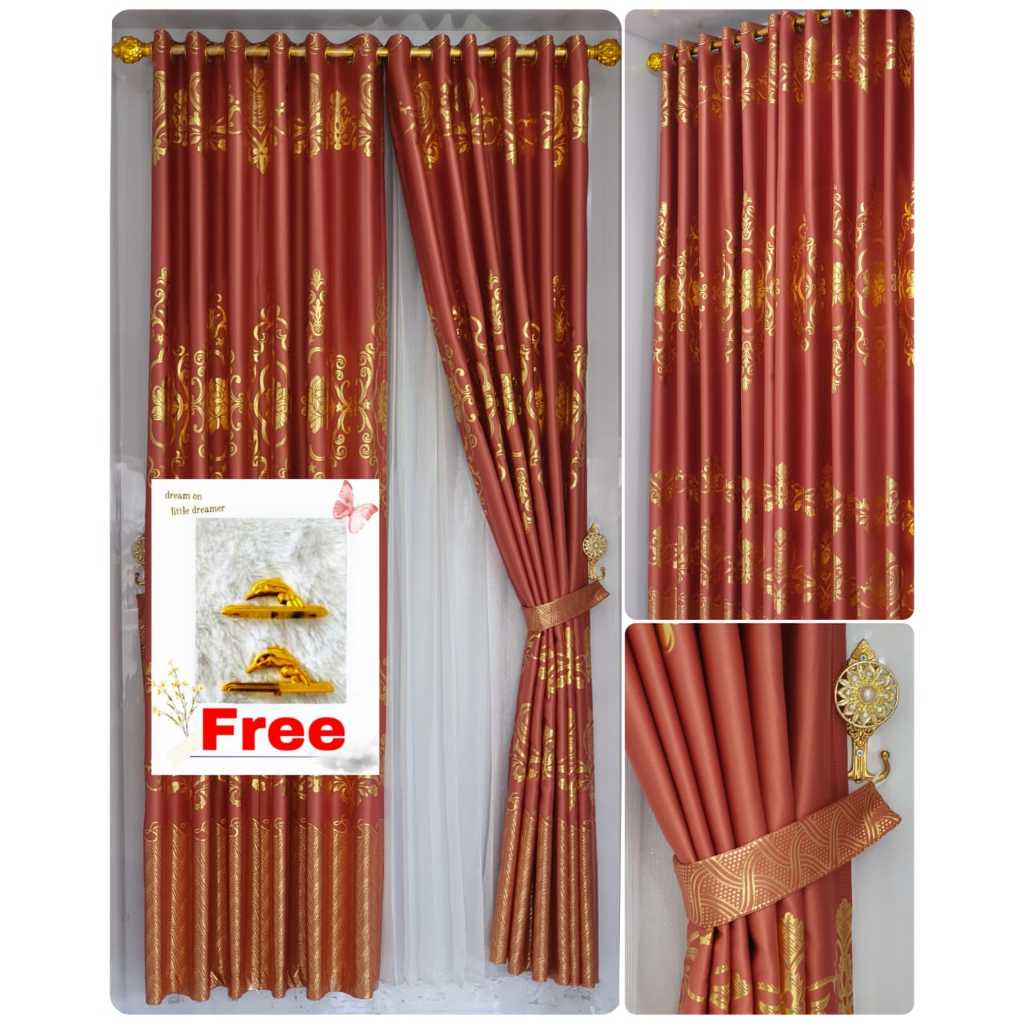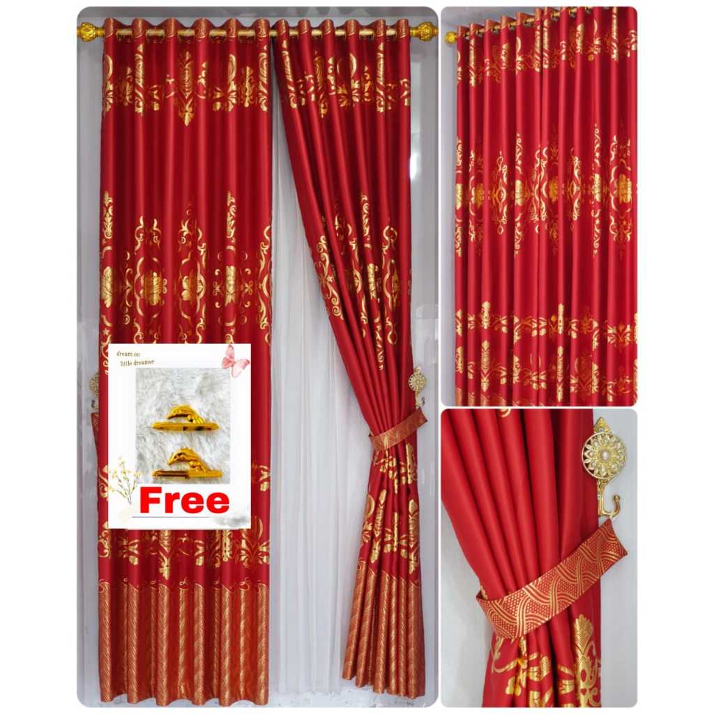 Gorden Blackout Premium Import Bunga Aesthetic Prin Mas Tebal Pintu Jendela Rumah Ukuran 225 X 135