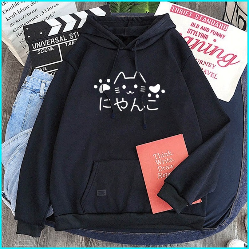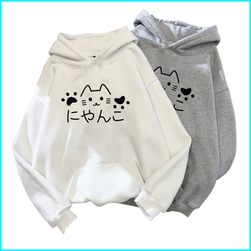 Parisdivarious Sweater Hoodie Jemper Kucing Lucu Bahan Fleece Size S - Xxl Pria Wanita