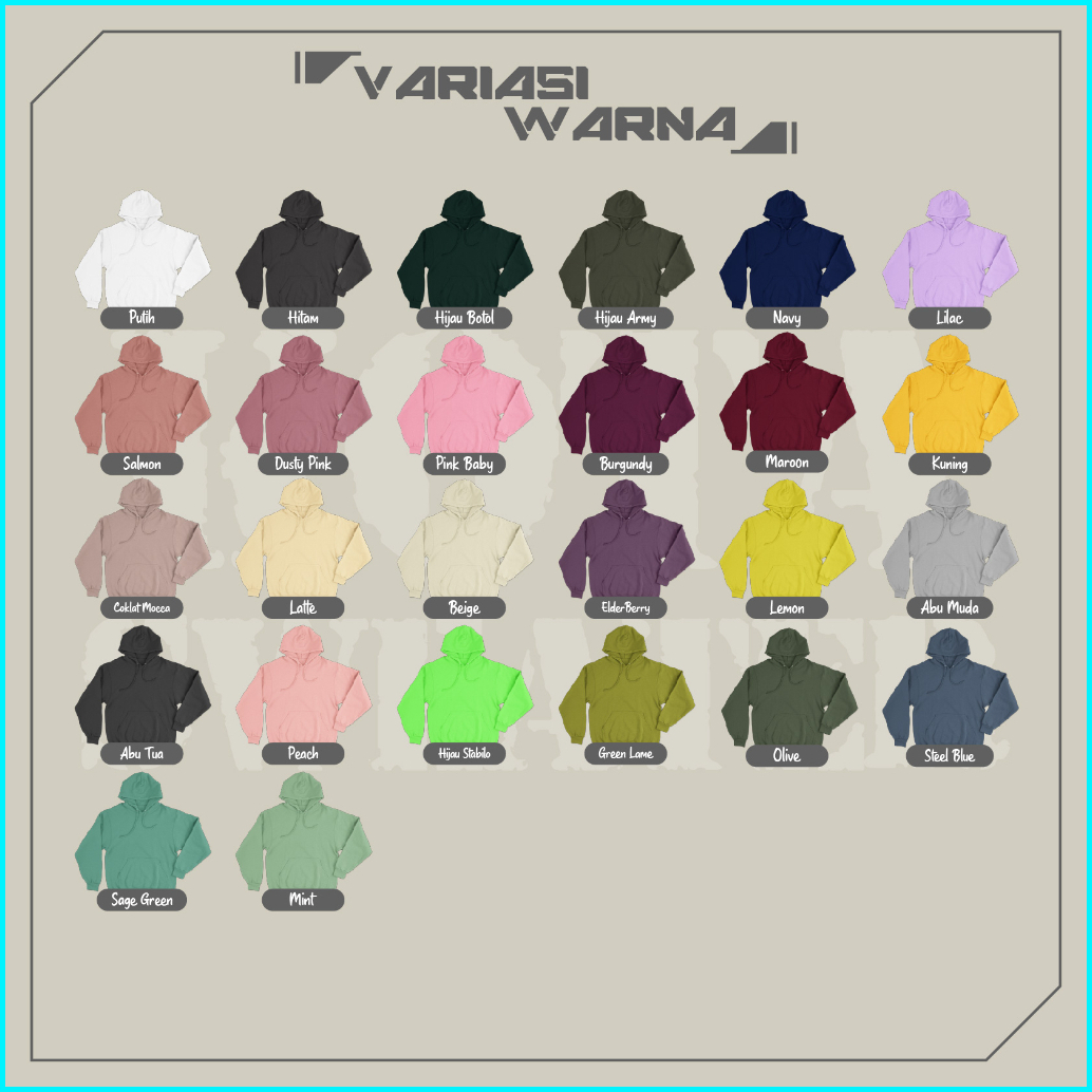 Hitam, Putih, NAVY, MAROON, Beige, COKLAT MOCCA, ABU MUDA, RANDOM WARNA&DESIGN, LATTE/CREAM, Lilac, HIJAU ARMY, WARNA LAIN DI NOTE
