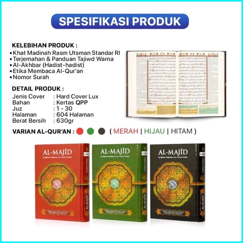 Alquran Al Majid A5 Terjemah Dan Tajwid Warna Alquran Almajid Ukuran Sedang A5
