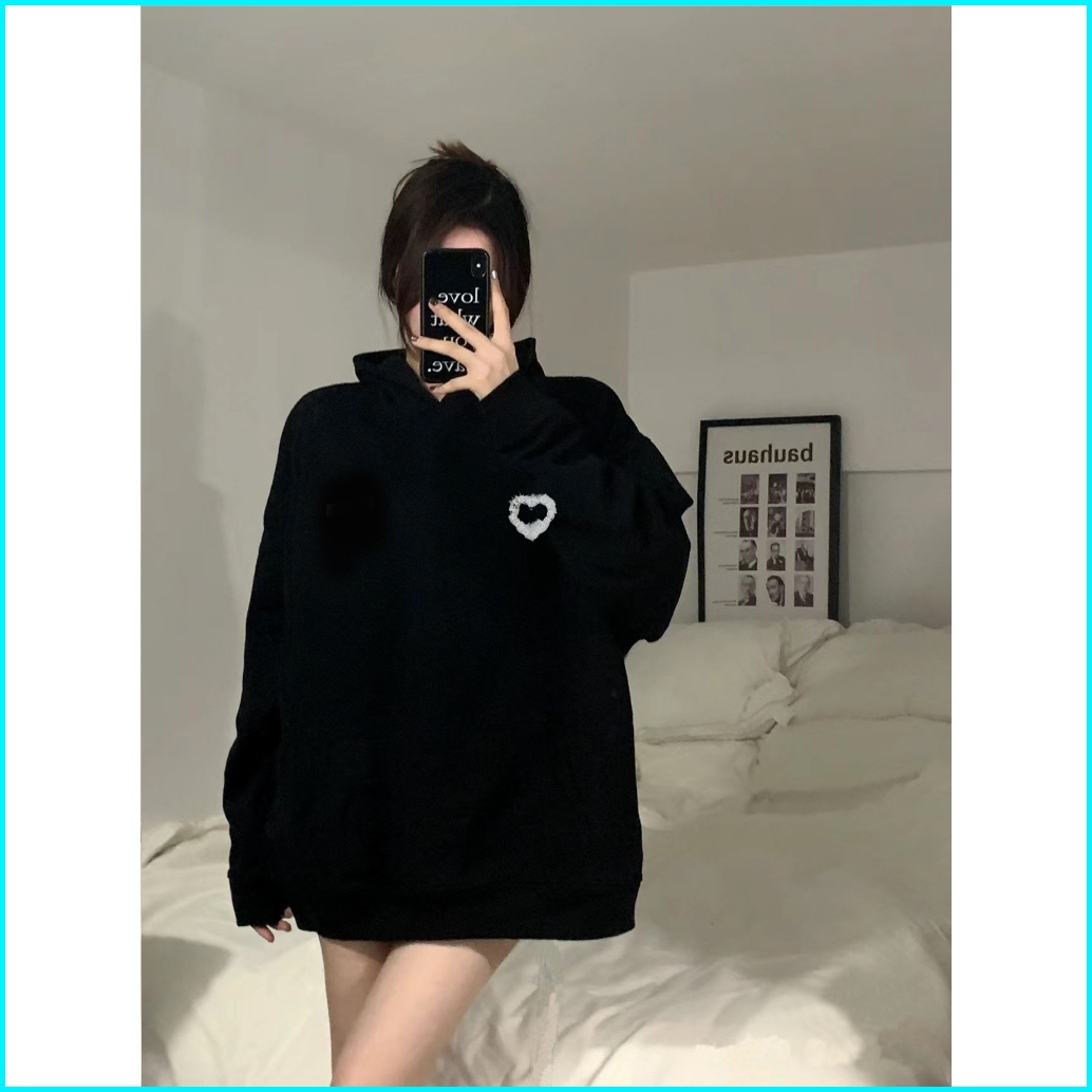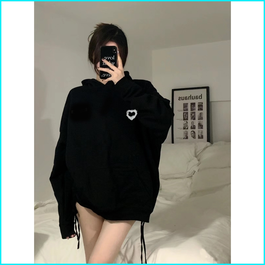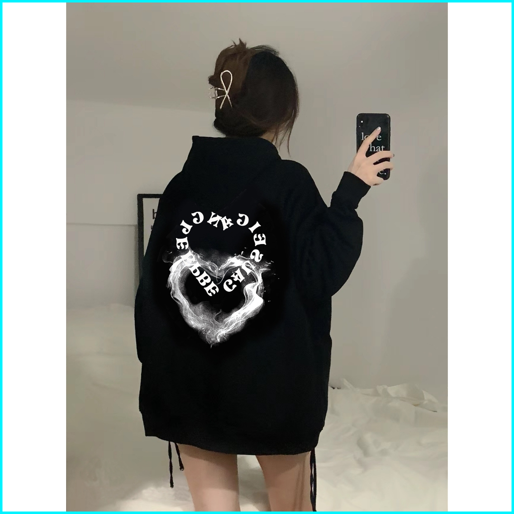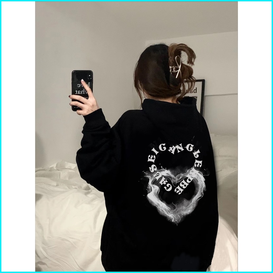 Sweater Hoodie American Retro Lengan Panjang Heart Graffiti Print Hoodie Oversize Street Style Premium Sweatershirt