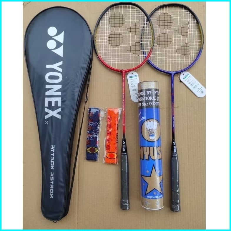 Raket Bulutangkis Langsungan Paket Lengkap Raket Grip Tas Shuttlecock 23 Lbs