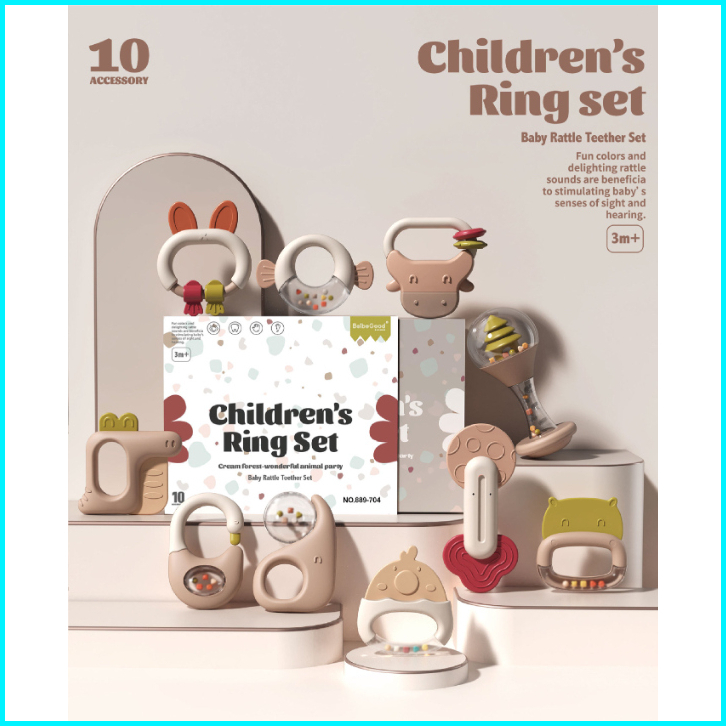10in1 Children Ring Set Teether Bayi Smainan Anak Rattle Stick Gigitan Bayi