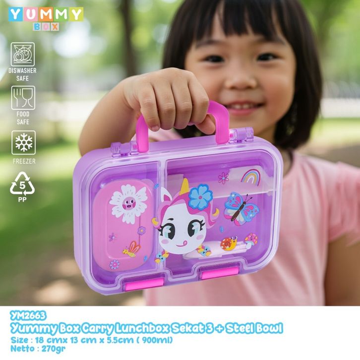 Tempat Makan Anak YUMMY BOX CARRY LUNCHBOX SEKAT 3+ STEEL BOWL BPA FREE YM2663