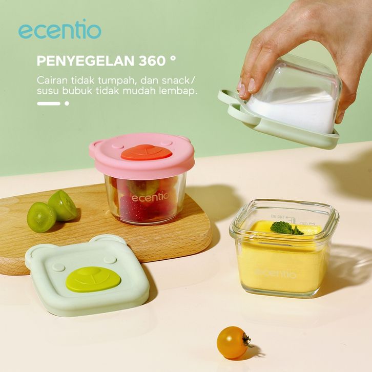 Tempat Makan Anak Ecentio Oven Glass Food Container MPASI Bayi 3Pcs Set 120mili+140mili+140mili Glass Silicon Cap Baby