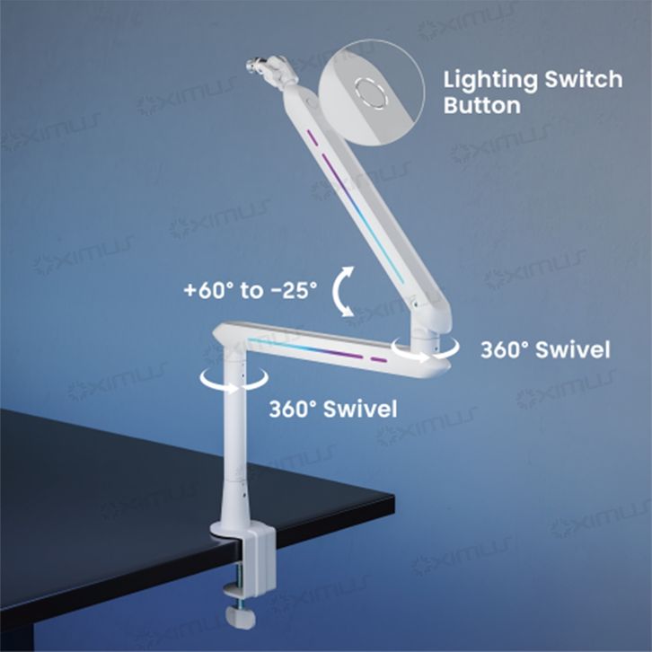 Premium Dynamic Microphone Boom Arm RGB Bracket Stand Oximus C191L Attractive lighting color the gaming space