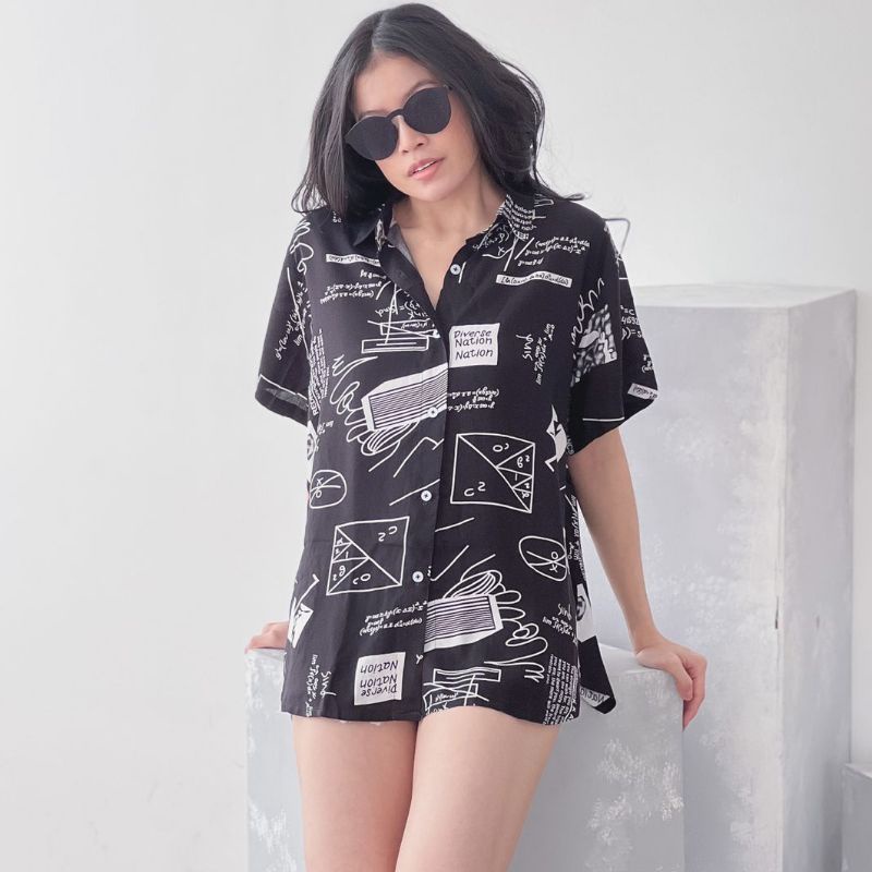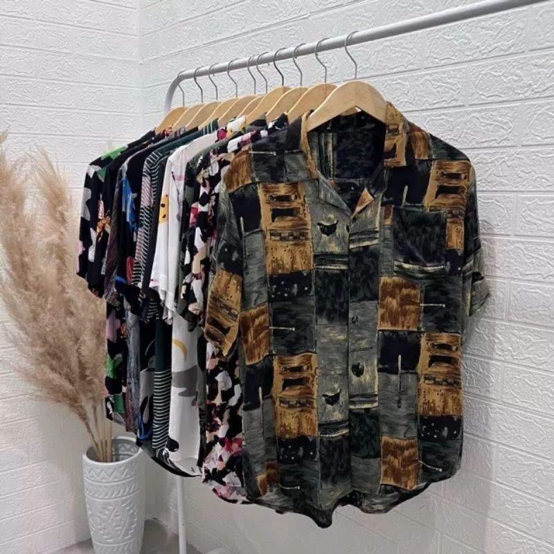Kemeja Hawai Unisex Vintage Casual Abstrak Lengan Pendek Retro Pantai