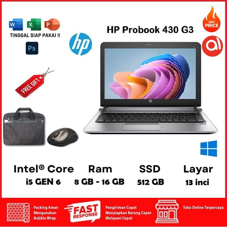 ( HOT SALE ) Laptop HP Probook 430 G3 Core i5 GEN 6 RAM 8GB/SSD 1TB FULLSET MULUSSS !!