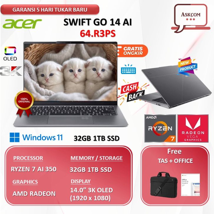 Acer Swift Go 14 AI Oled SFG14 RYZEN 7 AI 350 32GB 1TB W11+OHS+M365B 14.0 3K 64.R3PS