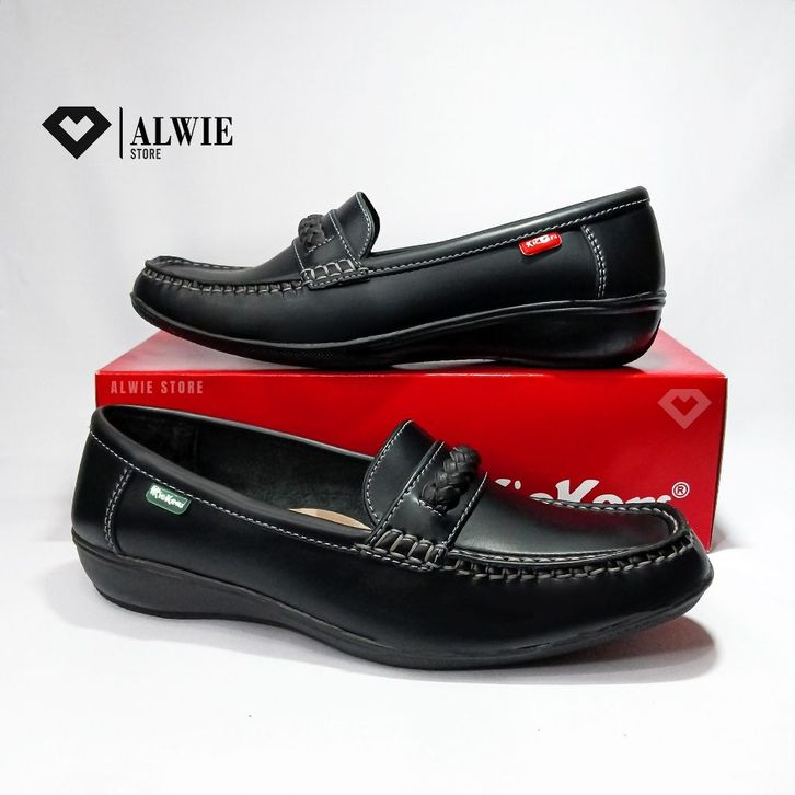 PREMIUM_Sepatu Pantofel Wanita Slip-On QG7012 | KICKERS | Hitam Kepang Fantofel Kerja Perawat Guru