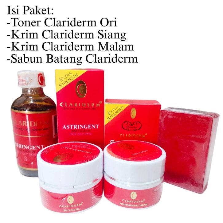 Paket Clariderm Wajah 4in1-Haniku Sabun Cuci Muka+Toner Whitening 6ml+Krim Pelembab Saing dan Malam