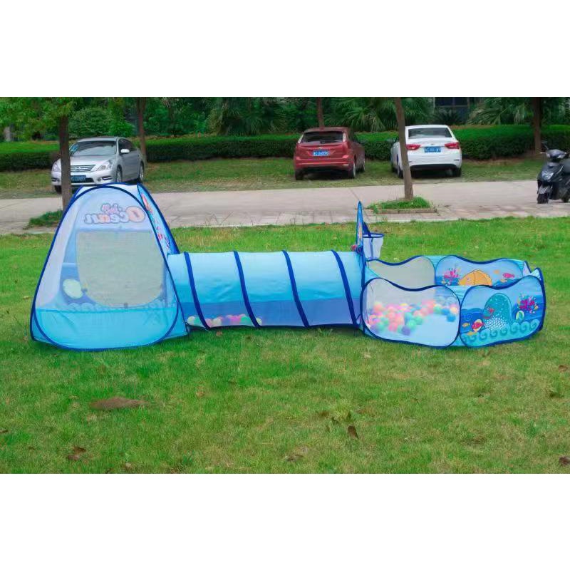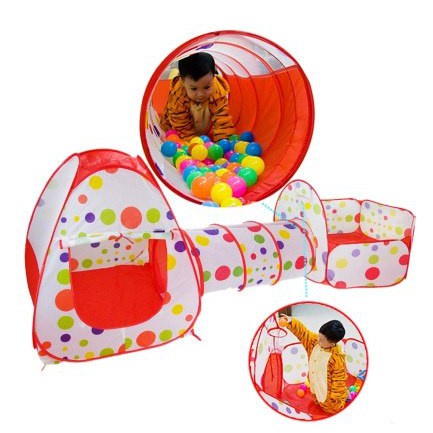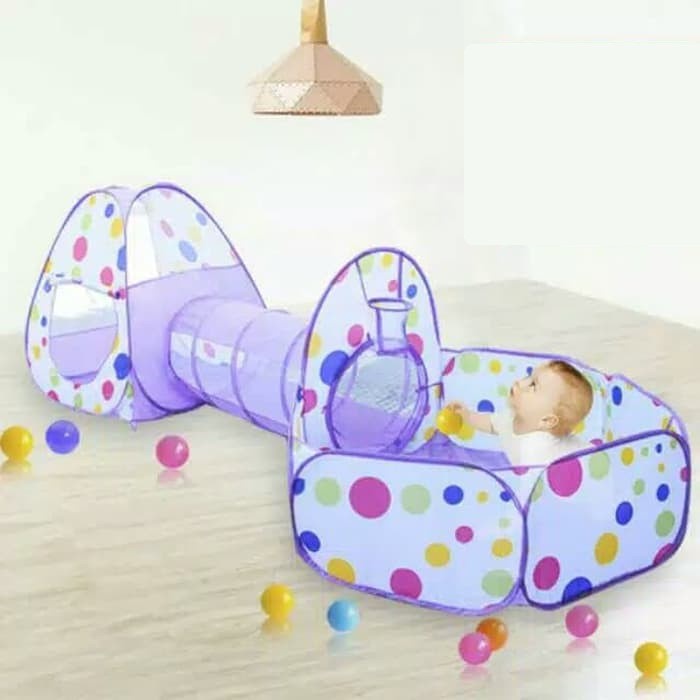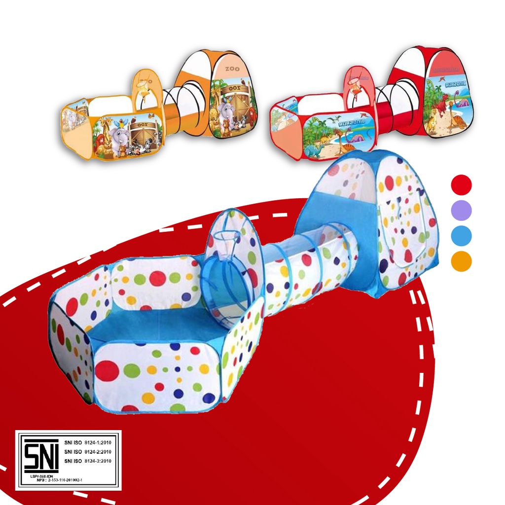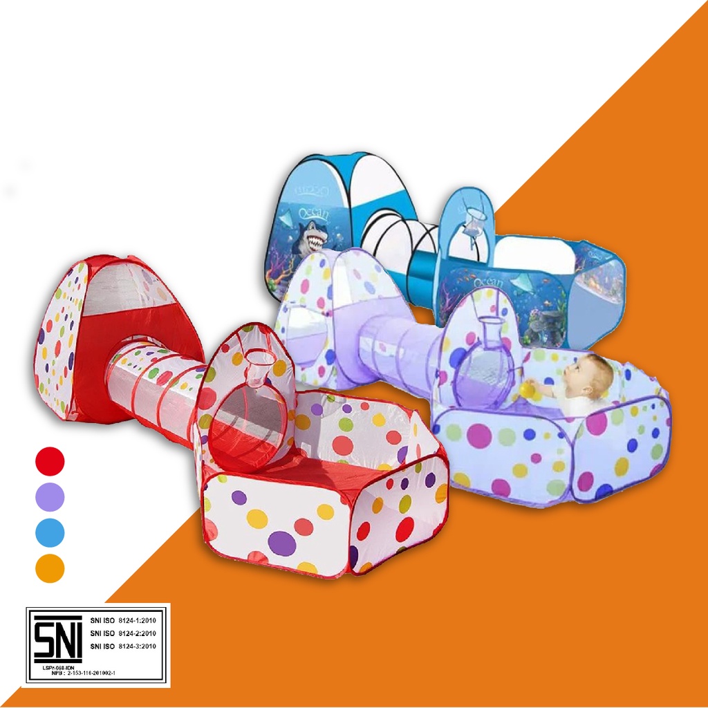 Mainan Tenda Anak Terowongan 4 in 1 + Kolam + Ring Basket Mainan Keranjang Mandi Bola Anak Stockami M6