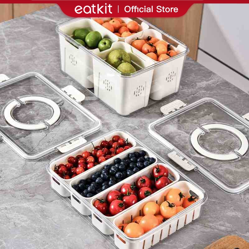 Kotak Penyimpanan Makanan Wadah Sayur Dan Buah Tempat Bumbu Dapur 4/8 Grid Food Container