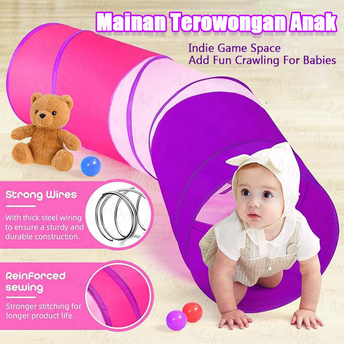 Mainan Anak Playground Terowongan Merangkak Bayi 1.8m/1.2m Anak-anak Mainan Terapi Yang Dapat Dilipat