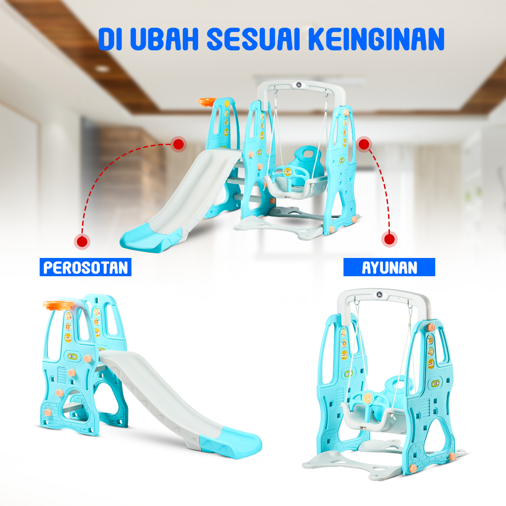 MMonkeyToys Perosotan Ayunan Anak 3IN1 Slide And Swing Perosotan Ayunan Ring Basket