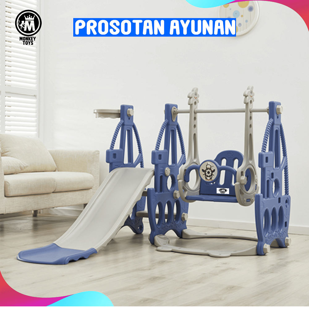 MMonkeyToys Perosotan Anak Seluncuran Multifungsi Ada Ayunan Ring Basket Dan Musik