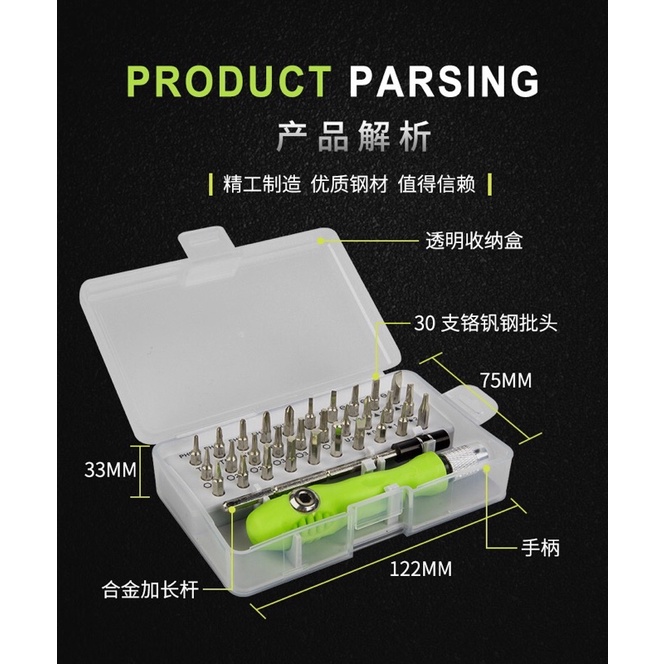 IMURA | Obeng Set 32 in 1 Kotak Transparan Multi Screwdriver gagang Hijau