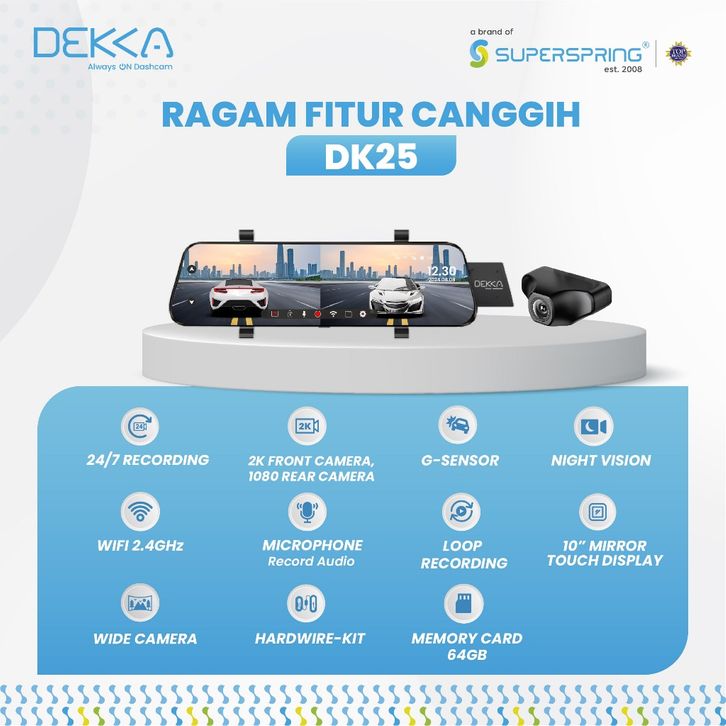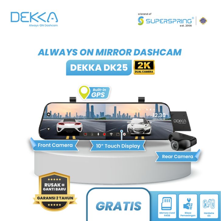 dashcam DEKKA DK25 Dashcam Mirror Spion Mobil 2K Depan Belakang Wifi 24GHz GPS Always On Gratis P angan dashcam mobil