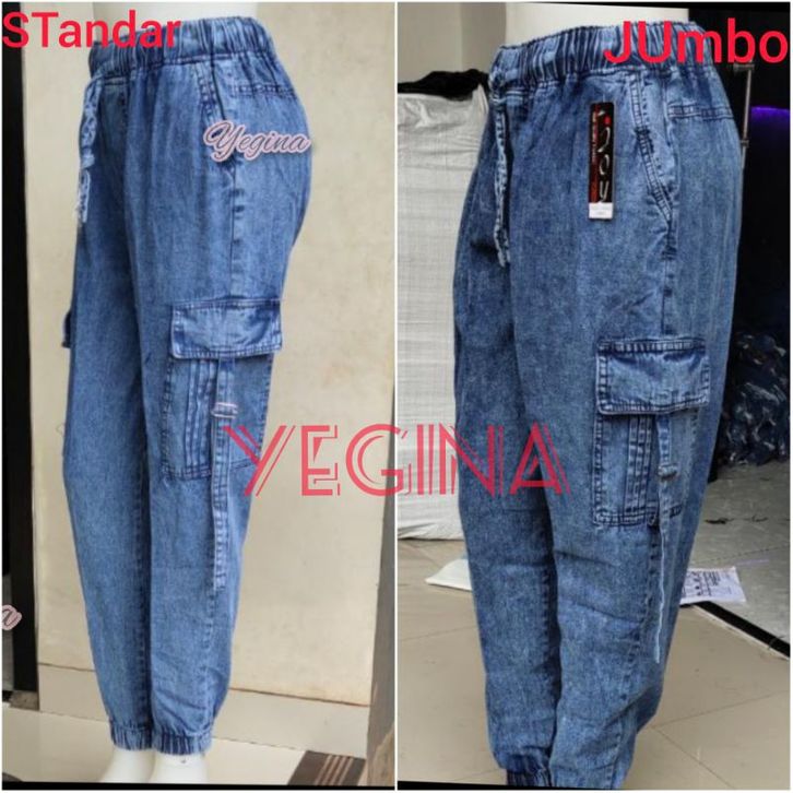 CELANA JOGER CARGO JEANS STANDAR JUMBO WANITA DEWASA TERMURAH REALPIC BAHAN HALUS TIDAK LUNTUR