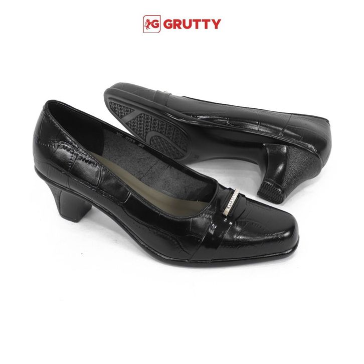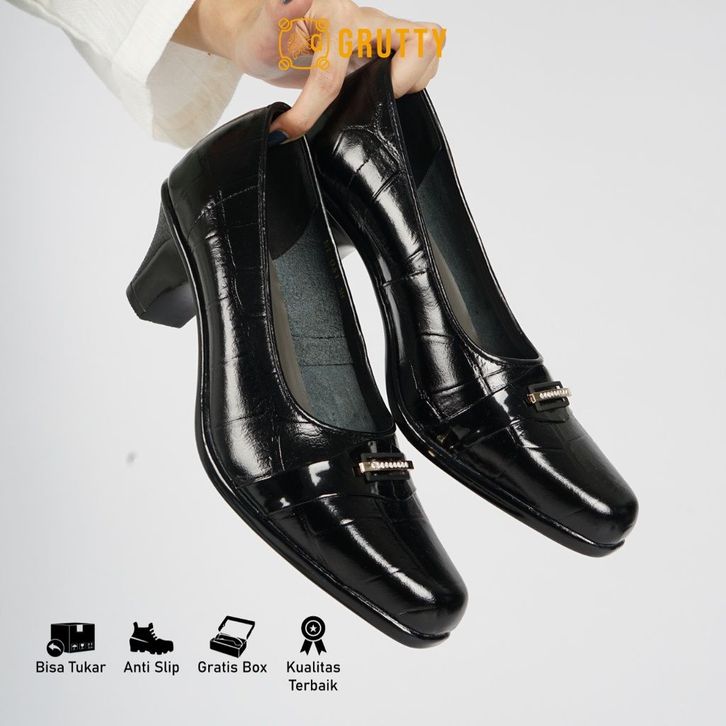 Sepatu Wanita Formal Pantofel Kerja Heels Kulit Grutty DC031 Hitam